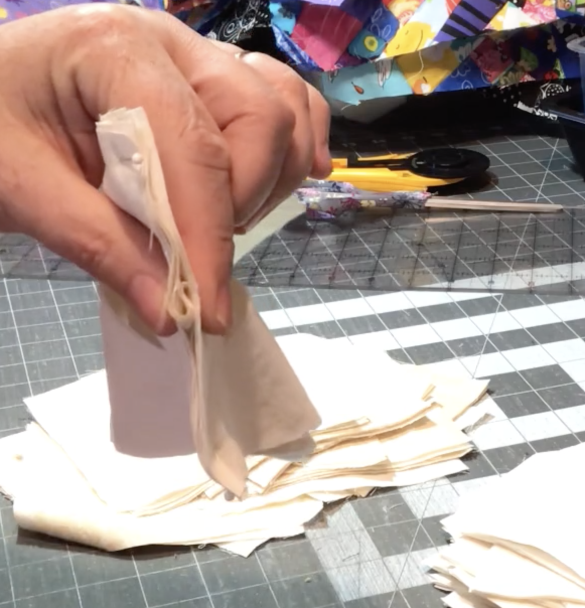 Note that the backing squares will not be seen in the finished quilt, and so you can use up your ugly fabric for these, or cut up an old (but clean!) sheet.